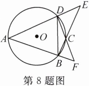 8. 如图,四边形ABCD是$\odot O$的内接四边形,四边形ABCD两组对边的延长线分别相交于点E,F,且$∠E= 40^{\circ }$,$∠F= 50^{\circ }$,连结BD.