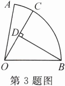 3. 如图,在扇形AOB中,$∠AOB= 80^{\circ }$,半径$OA= 3$,C是$\overset{\frown }{AB}$上一点,连结OC,D是OC上一点,且$OD= DC$,连结BD.若$BD⊥OC$,则$\overset{\frown }{AC}$的长为(