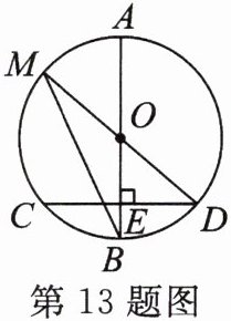 13. (方程思想)如图,AB是$\odot O$的直径,弦$CD⊥AB$于点E,点M在$\odot O$上,MD恰好经过圆心O,连结MB.