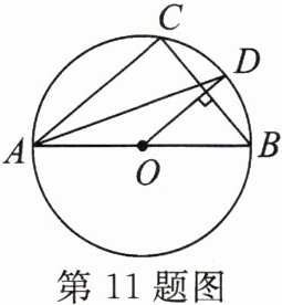 11. 如图,AB是$\odot O$的直径,C是圆上一点,连结CA,CB,过点O作弦BC的垂线,交$\overset{\frown }{BC}$于点D,连结AD.