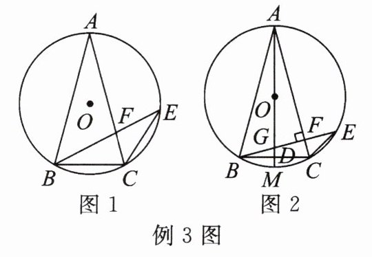 (2)当点$E运动到使BE\perp AC$时,如图2,连结$AO$并延长,交$BE于点G$,交$BC于点D$,交$\odot O于点M$.求证:$D为GM$的中点.
