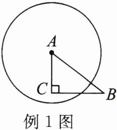 例1 如图,在$\triangle ABC$中,$\angle ACB= 90^{\circ}$,$AB= 5$,$BC= 4$.以点$A$为圆心,$r$为半径作圆,当点$C在\odot A内且点B在\odot A$外时,$r$的值可能是(