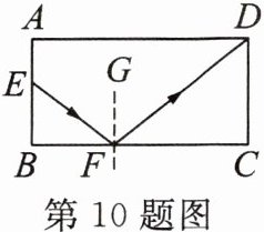 10. 如图,矩形ABCD为台球桌面.AD= 260cm,AB= 130cm.球目前在点E的位置,AE= 60cm.如果小丁瞄准BC边上的点F将球打过去,经过反弹后,球刚好弹到点D的位置.