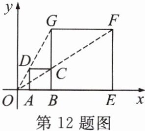 12. 如图,在平面直角坐标系中,正方形 ABCD与正方形 BEFG 是以原点 O 为位似中心的位似图形,且相似比为$1:3$,点 A,B,E 在x轴上.