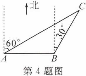 4. 在一次夏令营活动中,小明同学从营地A出发,要到A地的北偏东60°方向的C处,他先沿正东方向走了200m到达B地,再沿北偏东30°方向走,恰能到达目的地C(如图所示),那么,由此可知,B、C两地相距