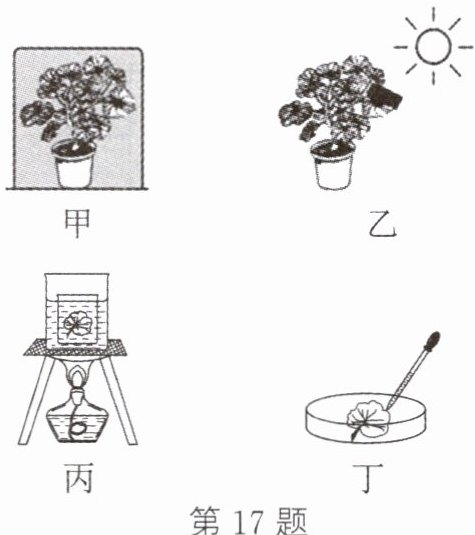 17. (8分)请根据如图所示的“绿叶在光下制造有机物”的部分实验步骤,回答下列问题: