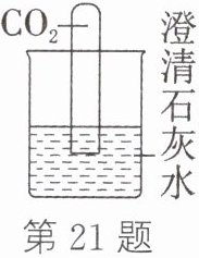 21. 如图所示为小明利用收集的$CO_2$气体进行的探究实验:如果烧杯内为澄清石灰水,那么能观察到的现象是