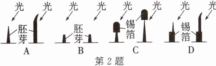 2. (深圳中考)1880年,达尔文用燕麦胚芽做了一个向光性探究实验(如图)。请分析并回答下列问题: