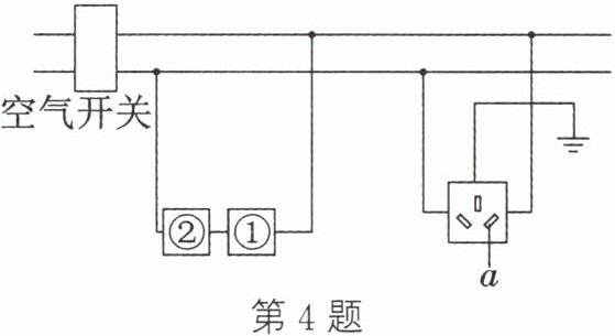 4. (本溪中考)在如图所示的家庭电路中,三孔式插座连接正确,①和②为电灯和开关所在位置,闭合开关,电灯正常工作,则(