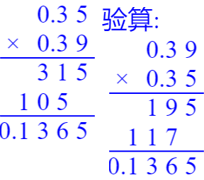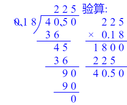 2.85×0.8=2.28 0.306÷0.36=0.85 0.952÷1.8≈0.5 0.35×0.39=0.1365 40.5÷0.18=225