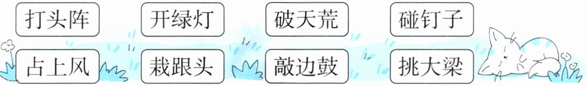 打头阵 开绿灯 破天荒 碰钉子 占上风 栽跟头 敲边鼓 挑大梁
