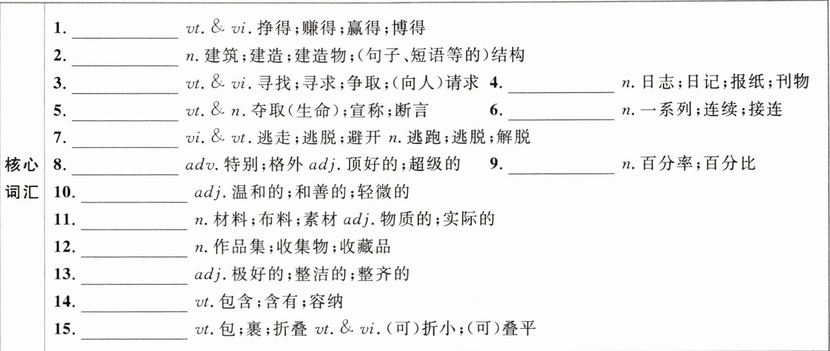 @@7.escape 8.super 9.percentage 10.mild 11.material 12.collection 13.neat 14.contain 15.fold