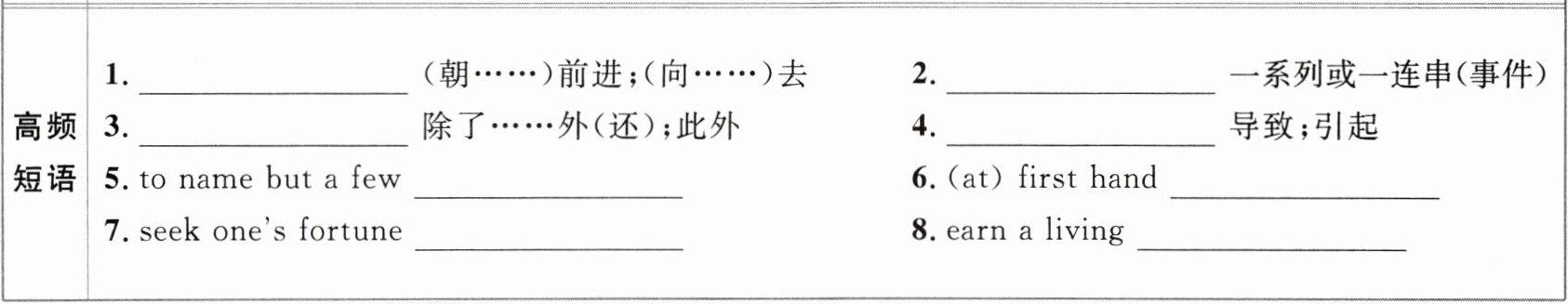 @@3.apart from/aside from 4.bring about 5.仅举几例 6.第一手;亲自 7.寻找成功致富之路;闯世界 8.谋生