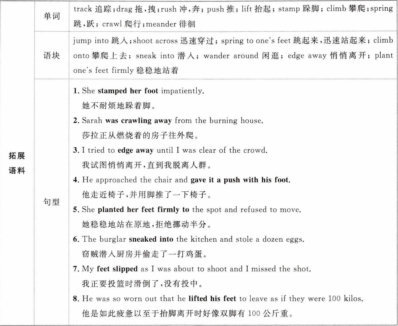 ④她的脚似乎在地板上滑动,几乎没有碰到地面,仿佛被一种看不见的力量托举着。(glide)