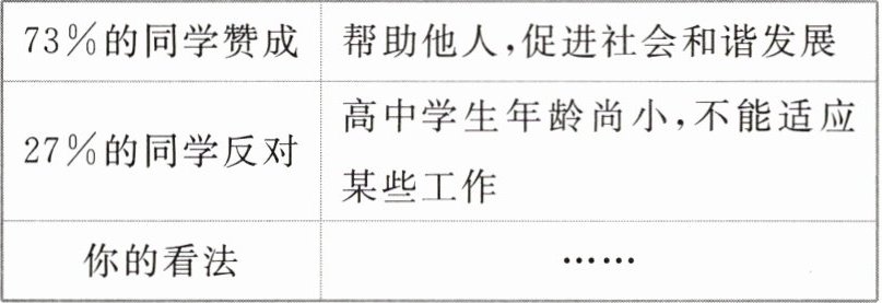 for high school students to do voluntary work. Opinions were divided on the topic.②73%的学生支持这一观点,因为志愿帮助他人有助于构建和谐社会。(support,contribute to)