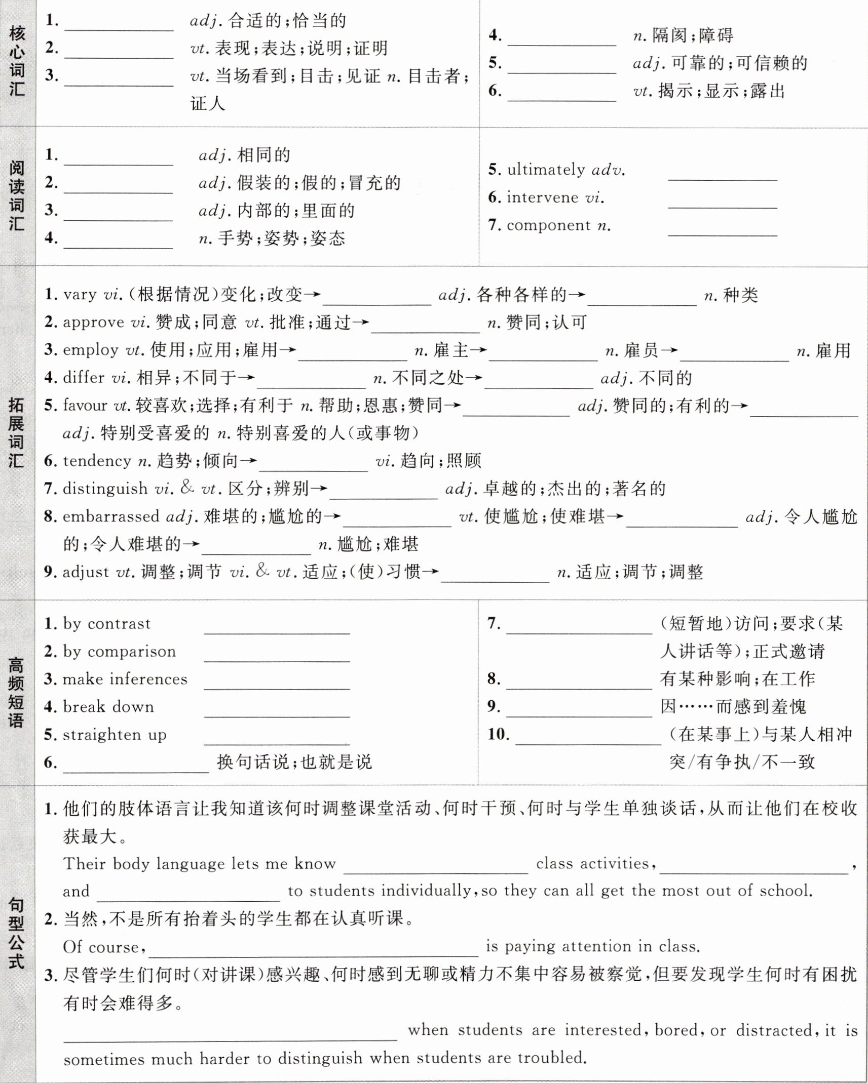 拓展词汇:1. various; variety 2. approval 3. employer; employee; employment 4. difference; different 5. favourable; favourite 6. tend 7. distinguished 8. embarrass; embarrassing; embarrassment 9. adjustment