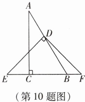 10. 将一副三角尺如图放置,$\angle A = 30^{\circ}$,$\angle F = 45^{\circ}$.若边$AB经过点D$,则$\angle EDB = $