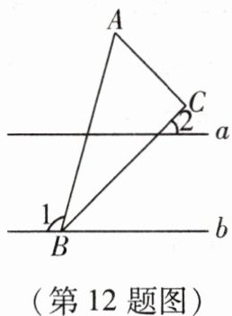 12. 如图,在$Rt \triangle ABC$中,$\angle A = 60^{\circ}$,$\angle C = 90^{\circ}$,点$B在直线b$上,直线$a // b$,若$\angle 1 = 105^{\circ}$,则$\angle 2$的度数为 (