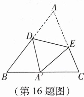 16. 如图,$\triangle ABC$中,$\angle A = 60^{\circ}$,将$\triangle ABC沿DE$翻折后,点$A落在BC边上的点A'$处.如果$\angle A'EC = 80^{\circ}$,则$\angle A'DE$的度数为 (