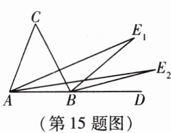15. 如图,在 $ \triangle ABC $ 中,$ AE_1 $,$ BE_1 $ 分别是内角 $ \angle CAB $、外角 $ \angle CBD $ 的三等分线,且 $ \angle E_1AD = \frac{1}{3} \angle CAB $,$ \angle E_1BD = \frac{1}{3} \angle CBD $;在 $ \triangle ABE_1 $ 中,$ AE_2 $,$ BE_2 $ 分别是内角 $ \angle E_1AB $、外角 $ \angle E_1BD $ 的三等分线,且 $ \angle E_2AD = \frac{1}{3} \angle E_1AB $,$ \angle E_2BD = \frac{1}{3} \angle E_1BD $;…。以此规律作下去,若 $ \angle C = m^{\circ} $,则 $ \angle E_n = $