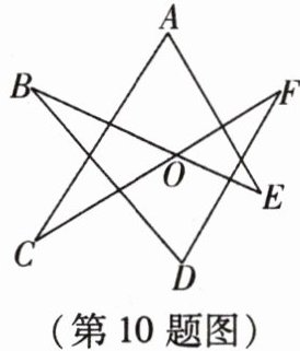 10. 如图,已知 $ \angle BOF = 120^{\circ} $,则 $ \angle A + \angle B + \angle C + \angle D + \angle E + \angle F $ 为(