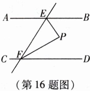 16. (6 分)如图,$ AB // CD $,直线 $ EF $ 分别交 $ AB $,$ CD $ 于点 $ E $,$ F $,$ \angle BEF $ 的平分线与 $ \angle DFE $ 的平分线相交于点 $ P $,求证:$ \triangle EPF $ 是直角三角形。