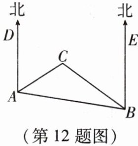 12. 如图,$ C $ 岛在 $ A $ 岛的北偏东 $ 50^{\circ} $ 方向上,在 $ B $ 岛的北偏西 $ 60^{\circ} $ 方向上,$ A $ 岛在 $ B $ 岛北偏西 $ 80^{\circ} $ 方向上,则从 $ C $ 岛看 $ A $,$ B $ 两岛的视角 $ \angle ACB $ 为