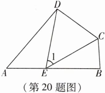 20. (10 分)如图,在四边形 $ ABCD $ 中,$ \angle A + \angle BCD = 180^{\circ} $,$ CE $ 平分 $ \angle BCD $ 交 $ AB $ 于点 $ E $,连接 $ DE $。