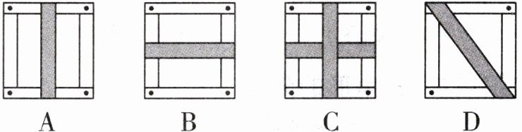 8. 小杰用四个螺丝将四条不可弯曲的木条围成一个如图所示的木框,小杰发现相邻两木条的夹角均可调整,所以很容易变形,为了使木框不易变形,下列方案中最好的是(