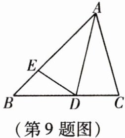 9. 如图,在$\triangle ABC$中,$AB = 6$,$BC = 5$,$AC = 4$,$AD平分\angle BAC交BC于点D$,在$AB上截取AE = AC$,则$\triangle BDE$的周长为