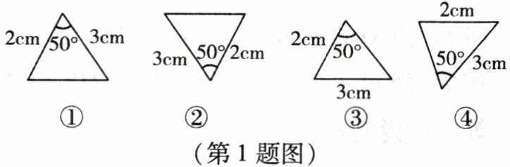 1. 如图,下列两个三角形全等的是(