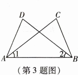 3. 如图,已知$\angle 1 = \angle 2$,要应用“SAS”判定$\triangle ABC\cong \triangle BAD$,还需要添加的一个条件是