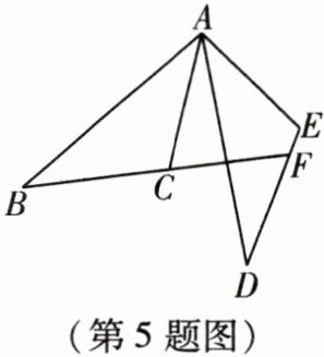 5. 如图,$AC = AE$,$BC = DE$,$BC的延长线与DE相交于点F$,$\angle ACF + \angle AED = 180^{\circ}$。求证:$AB = AD$。