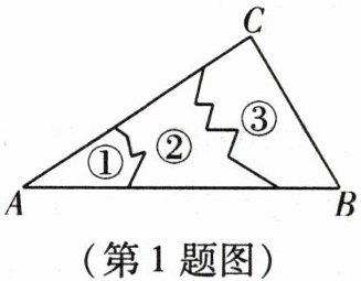 1. 如图,一名工作人员不慎将一块三角形模具打碎成三块,他要带其中一块或两块碎片到商店去配一块与原来一样的三角形模具,他带____去最省事. (