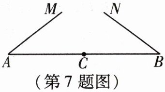 7. 如图,点 $ C $ 为线段 $ AB $ 的中点,$ ∠BAM = ∠ABN $,点 $ D $,$ E $ 分别在射线 $ AM $,$ BN $ 上,$ ∠ACD $ 与 $ ∠BCE $ 均为锐角. 若添加一个条件一定可以证明 $ △ACD ≌ △BCE $,则这个条件不能是 (