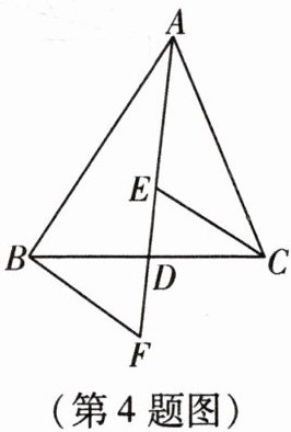 4. 如图,$ AD $ 是 $ △ABC $ 的中线,$ E $,$ F $ 分别是 $ AD $ 和 $ AD $ 延长线上的点,且 $ CE // BF $. 求证:$ △ECD ≌ △FBD $.