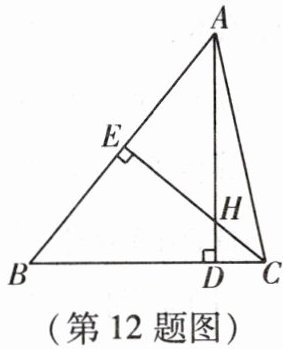12. 如图,在△ABC 中,AD ⊥ BC,CE ⊥ AB,垂足分别为 D,E,AD,CE 交于点 H. 已知 EH = EB = 3,AE = 4,求 CH 的长.