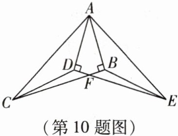 10. 如图,已知 Rt△ABC ≌ Rt△ADE,∠ABC = ∠ADE = 90°,BC 与 DE 相交于点 F,连接 CD,EB.