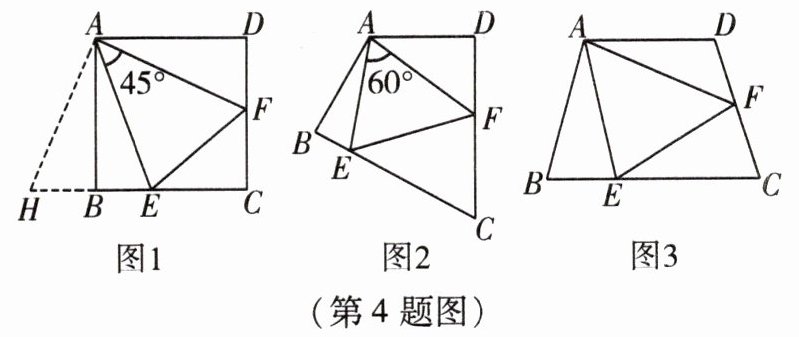 (3) 如图 3,在四边形 ABCD 中,AB = AD = a,BC = b,CD = c. ∠ABC 与∠D 互补,AE,AF 与 BC,CD 分别交于 E,F 两点,且∠EAF = $\frac{1}{2}$∠BAD,求△EFC 的周长. (用含 a,b,c 的式子表示)