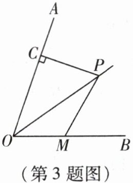 3. 如图,射线OP平分∠AOB,PC⊥OA,垂足为C,点M是射线OB上的一个动点,若CP = 10,则线段PM最短为(