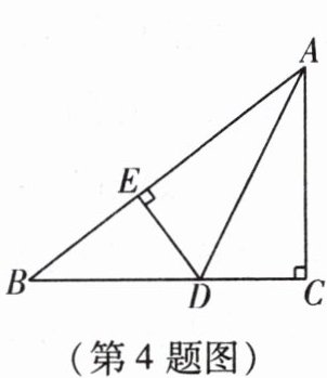 4. 如图,在△ABC中,∠C = 90°,AD平分∠BAC交BC于点D,DE⊥AB,垂足为E。若BC = 4,DE = 1.6,则BD的长为