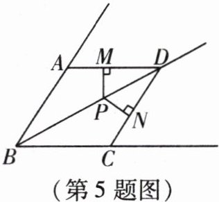 5. 如图,BD为∠ABC的平分线,AB = BC,点P在BD上,PM⊥AD于点M,PN⊥CD于点N。求证:PM = PN。