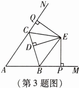 3. 如图,BE,CE分别为△ABC的两个外角的角平分线,EP⊥AM于点P,EQ⊥AN于点Q,ED⊥BC于点D. 求证:点E在∠NAM的平分线上.
