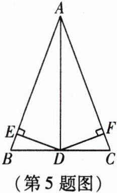 5. 如图,在△ABC中,D是BC的中点,DE⊥AB,DF⊥AC,垂足分别是E,F,且BE = CF. 若∠BAC = 40°,求∠BAD的度数.