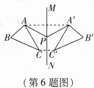 6. 如图,△ABC 与△A'B'C'关于直线 MN 对称,P 为 MN 上任一点,下列结论错误的是(