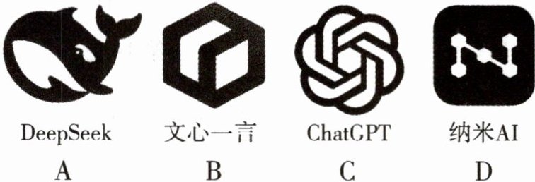 1. 以下是四款常用的人工智能大模型的图标,其文字上方的图案是轴对称图形的是(