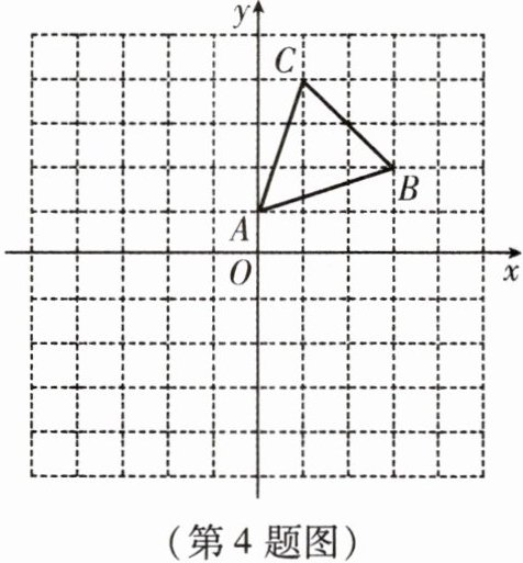 4. 如图,$ \triangle ABC $ 的顶点 $ A(0,1) $,$ B(3,2) $,$ C(1,4) $ 均在正方形网格的格点上。