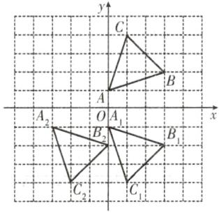 (2)如图,△A₂B₂C₂即为所求.A₂(-3,-1),B₂(0,-2),C₂(-2,-4).