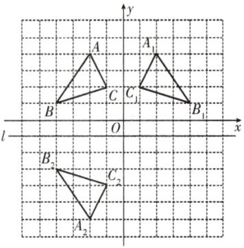 (2) 画出与 $ \triangle ABC $ 关于直线 $ l $ 对称的图形 $ \triangle A_2B_2C_2 $。