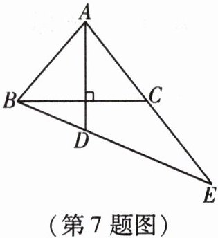 7. 如图,在 $\triangle ABC$ 中,$AB = AC$,$\angle BAC = 80^{\circ}$,$AD\perp BC$,$AD = AB$,连接 $BD$ 并延长,交 $AC$ 的延长线于点 $E$. 求 $\angle ADE$ 的度数.